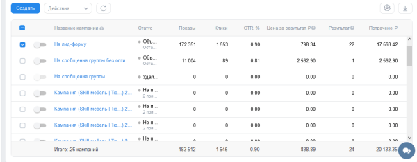 • Кейс в настройке рекламы ВК: Заявка от 133 рублей на мебель на заказ